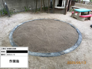 保育園様からのご依頼にて砂場清掃を実施致しました。安心して遊んで頂けるようにしっかりと作業をさせて頂きました。