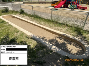 毎年作業依頼を頂きまして砂場清掃を実施させて頂いております。衛生面含めしっかりと作業をさせて頂きました。