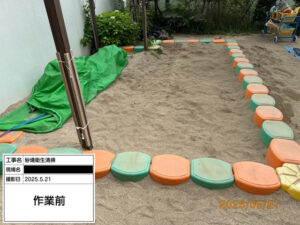 幼稚園様からのご依頼にて砂場清掃を実施致しました。安全な砂場で遊んでいただけるように作業をさせて頂きました。