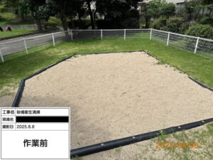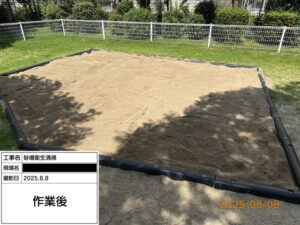 団地の砂場清掃、砂補充、砂菌検査を行いました(R7.9.16)