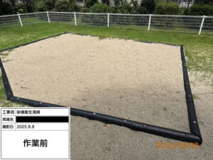 定期的に砂場清掃のご依頼を頂きましてありがとうございます。安全な砂場で遊んでいただけるように作業をさせて頂きました。