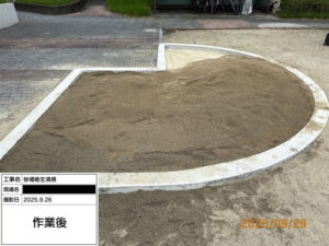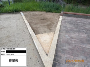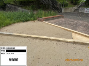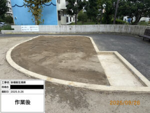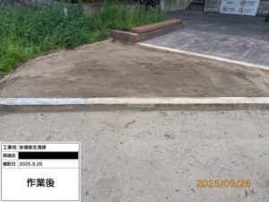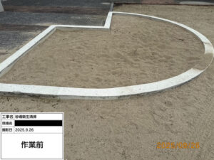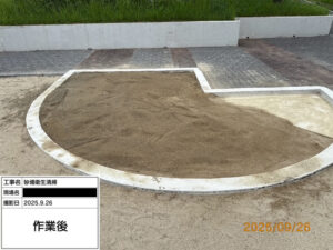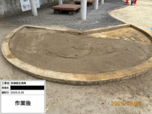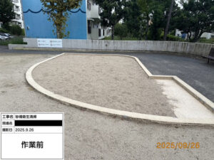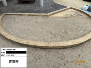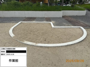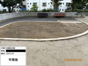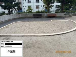 団地の砂場清掃、砂補充、砂菌検査を行いました(R7.9.26)